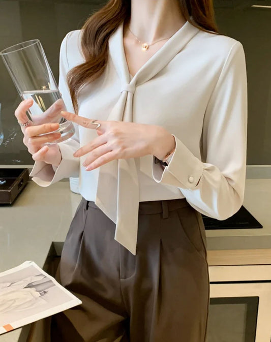 PromoçãoBlusa Retrô com Laço e Mangas Longas