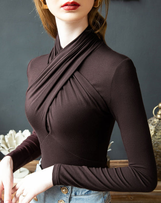 Blusa Alpina com Transpasse Frontal e Mangas Longas