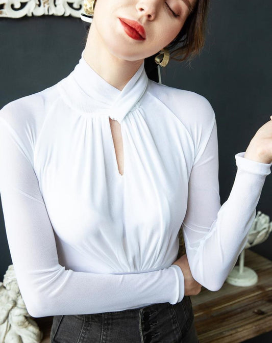 Blusa Euro com um Ombro de Fora e Mangas Longas