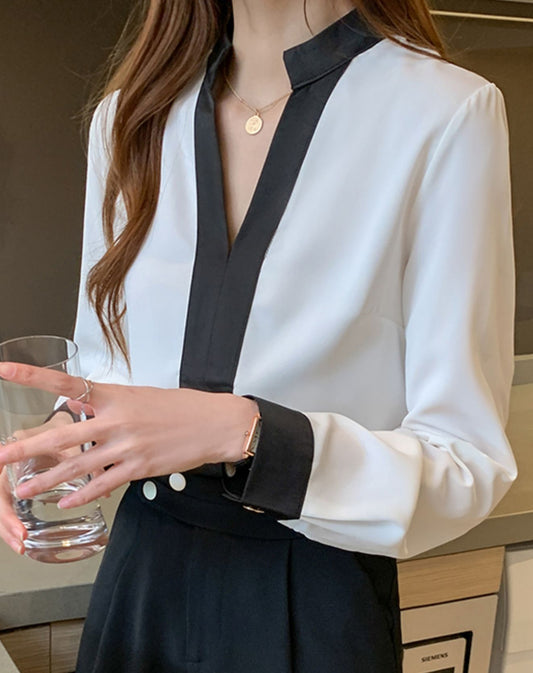 Blusa Curvelo com Gola Transpassada e Mangas Longas