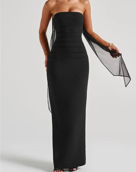 Vestido Longo Tina com Corte Fora na Cintura e Decote V