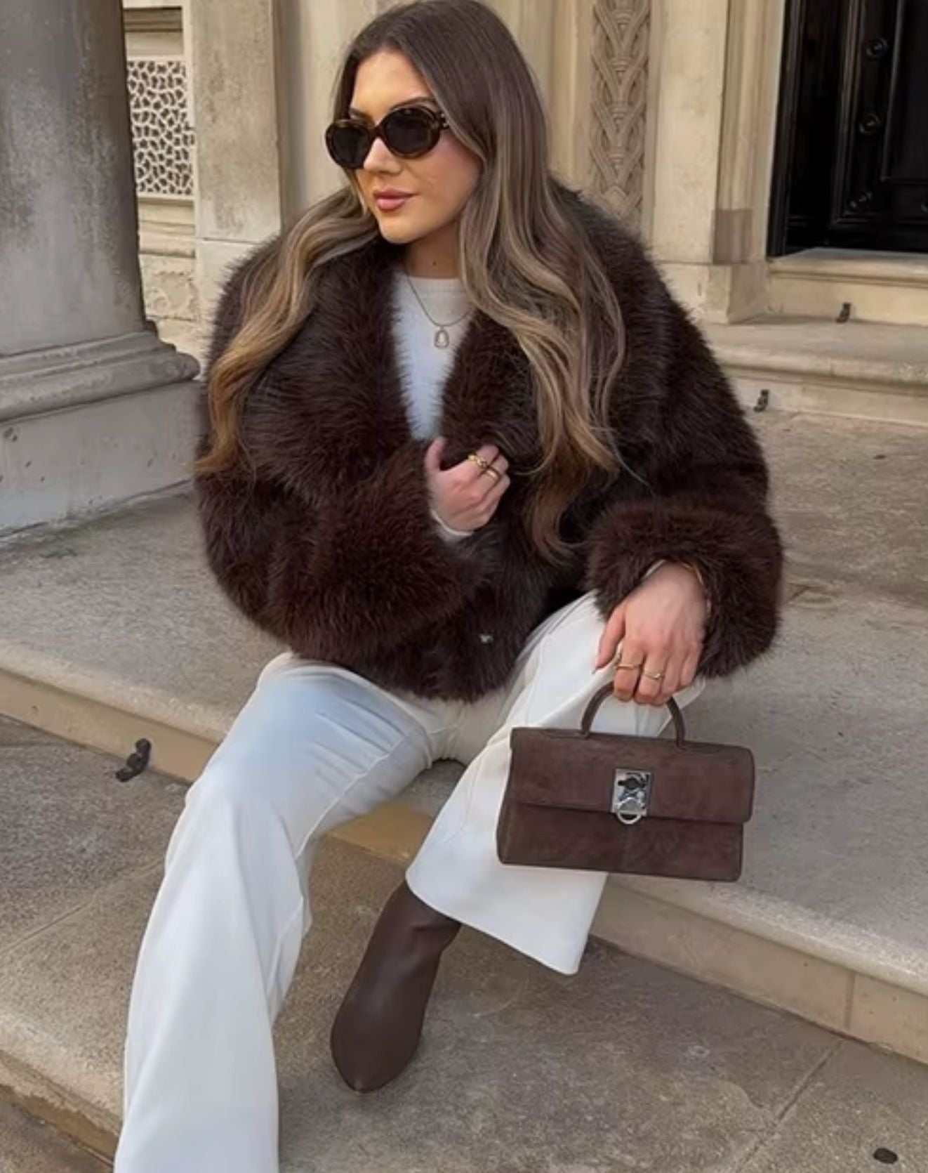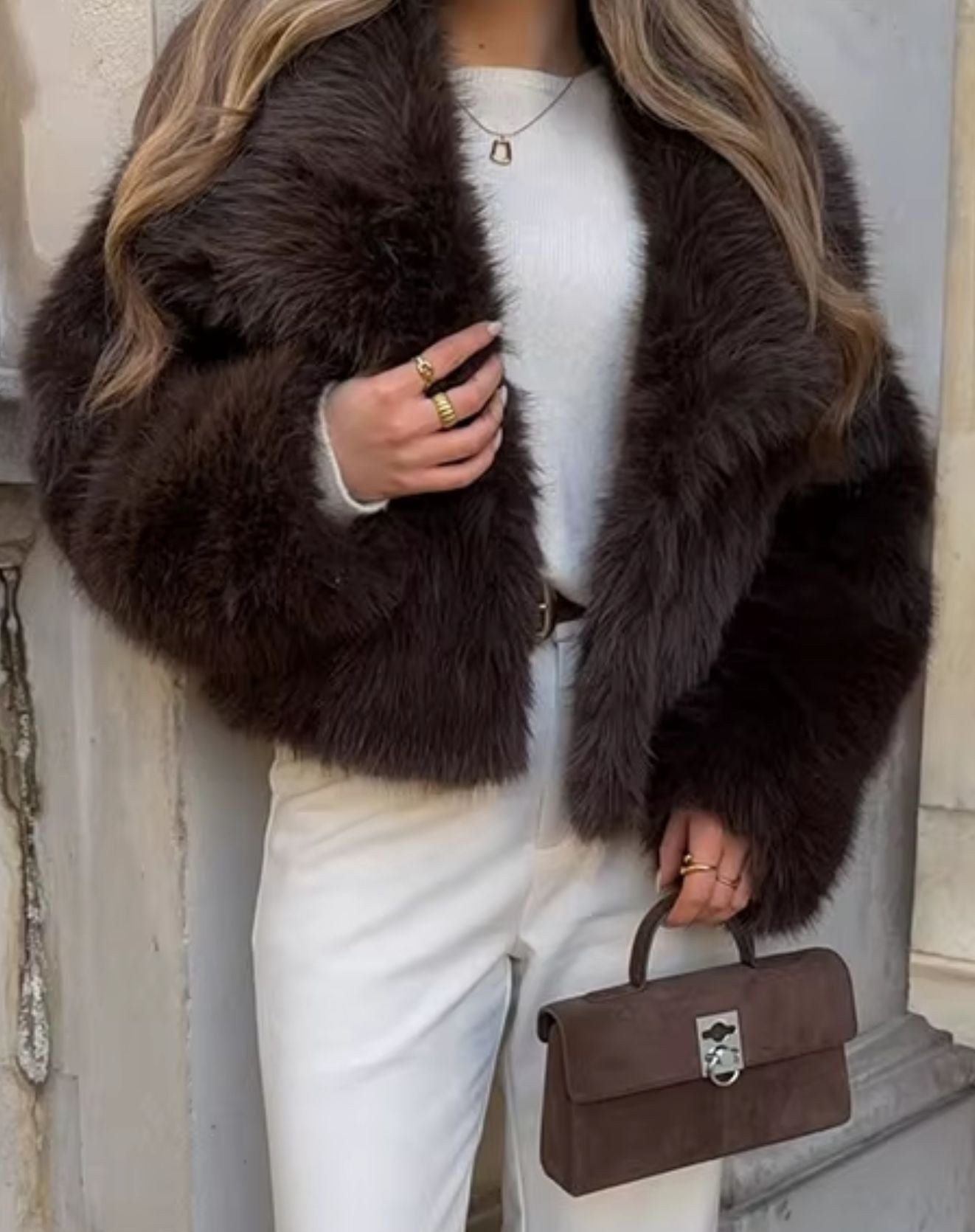 Uma peça que é um luxo só. O CASACO CURTO DE PELOS CAPPUCCINO deixa qualquer mulher charmosa, elegante e quentinha em dias mais frios, podendo ser combinado em diversas propostas de looks para aproveitar ao máximo as saídas neste inverno. Você vai amar! Confeccionado num modelo mais curtinho, possui gola, mangas longas, bolsos e forro.