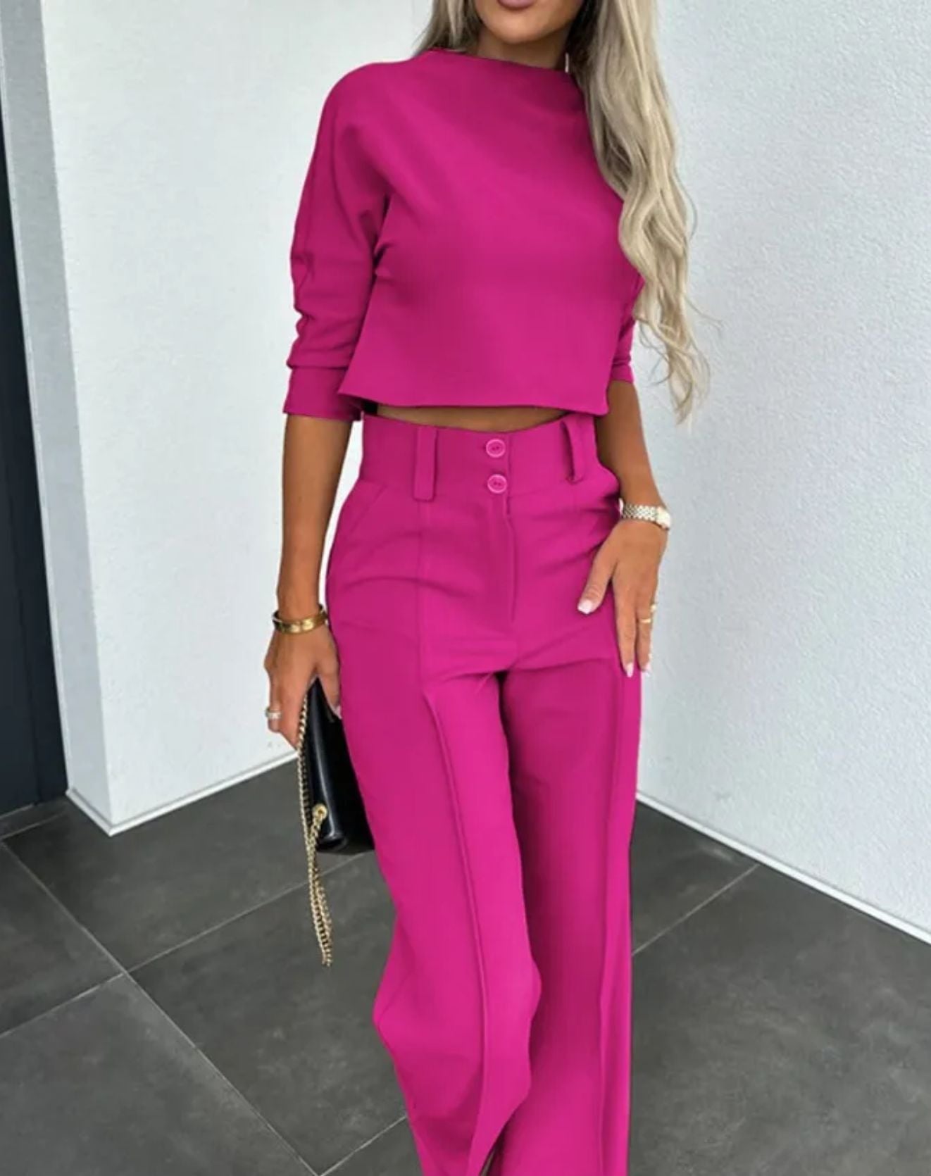 O CONJUNTO MISSISSIPI BLUSA 3/4 + CALÇA PANTALONA é perfeito para ser usado em todas as estações, além de confortável é estiloso e feito em tecido macio, podendo ser usado como conjunto ou, separadamente. Aposte! A blusa cropped possui mangas 3/4, comprimento curto e larga ao corpo. Já a calça, conta com corte leve pantalona, cós alto, bolsos laterais, passador de cinto e fechamento por zíper e botão.
