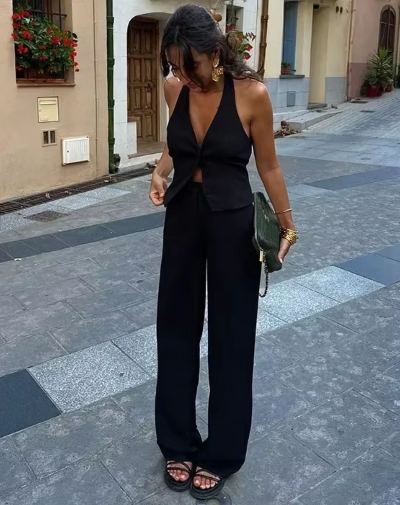 Versatilidade é o sobrenome deste maravilhoso CONJUNTO MONIQUE BLUSA FRENTE ÚNICA + CALÇA, você pode abusar das peças separadamente na hora de montar seu look. A blusa possui frente única, com decote em V, fechamento por botões frontais, estilo curto e aberta nas costas. A calça é estilo pantalona, fechamento por zíper e botão frontal, caimento reto e largo. Você vai amar!